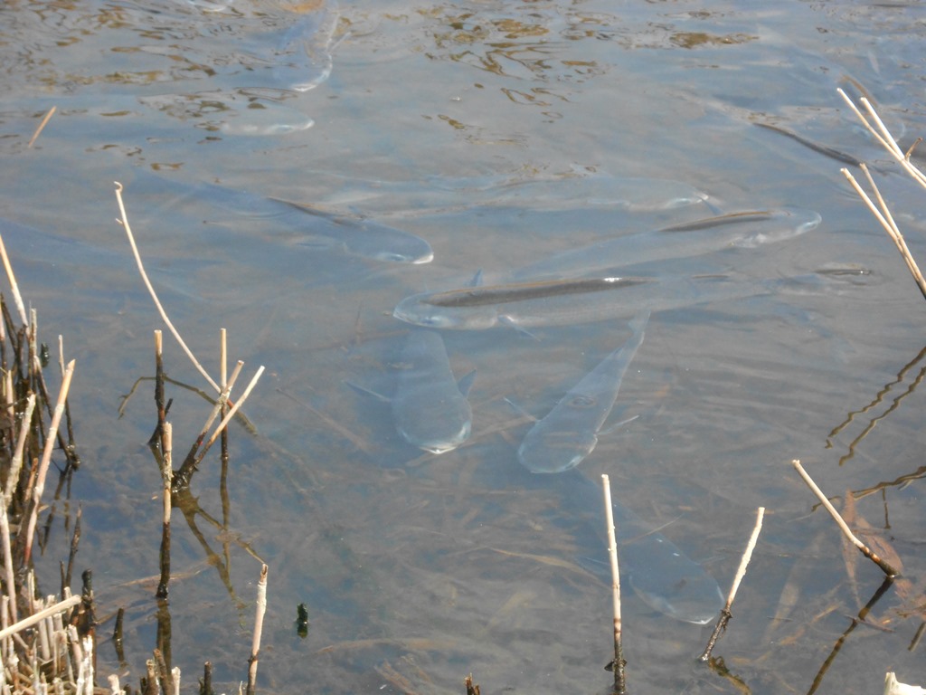 出会い口に足を踏み入れると、深さが精々3~40センチ位しかない浅瀬に大変な数のボラが群れをなしています。10月~1月が産卵の時期なので、産卵のためではなさそうです。
